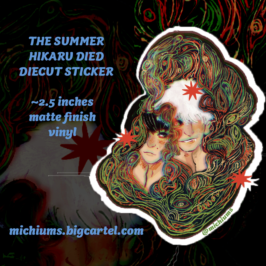 if you're a monster, then so am I! - a ~2.5 inch diecut vinyl sticker featuring hikaru and yoshiki from the summer hikaru died!
