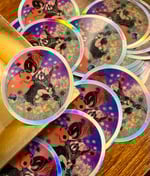 holographic vinyl sticker featuring Reze and Pochita from Chainsaw Man!